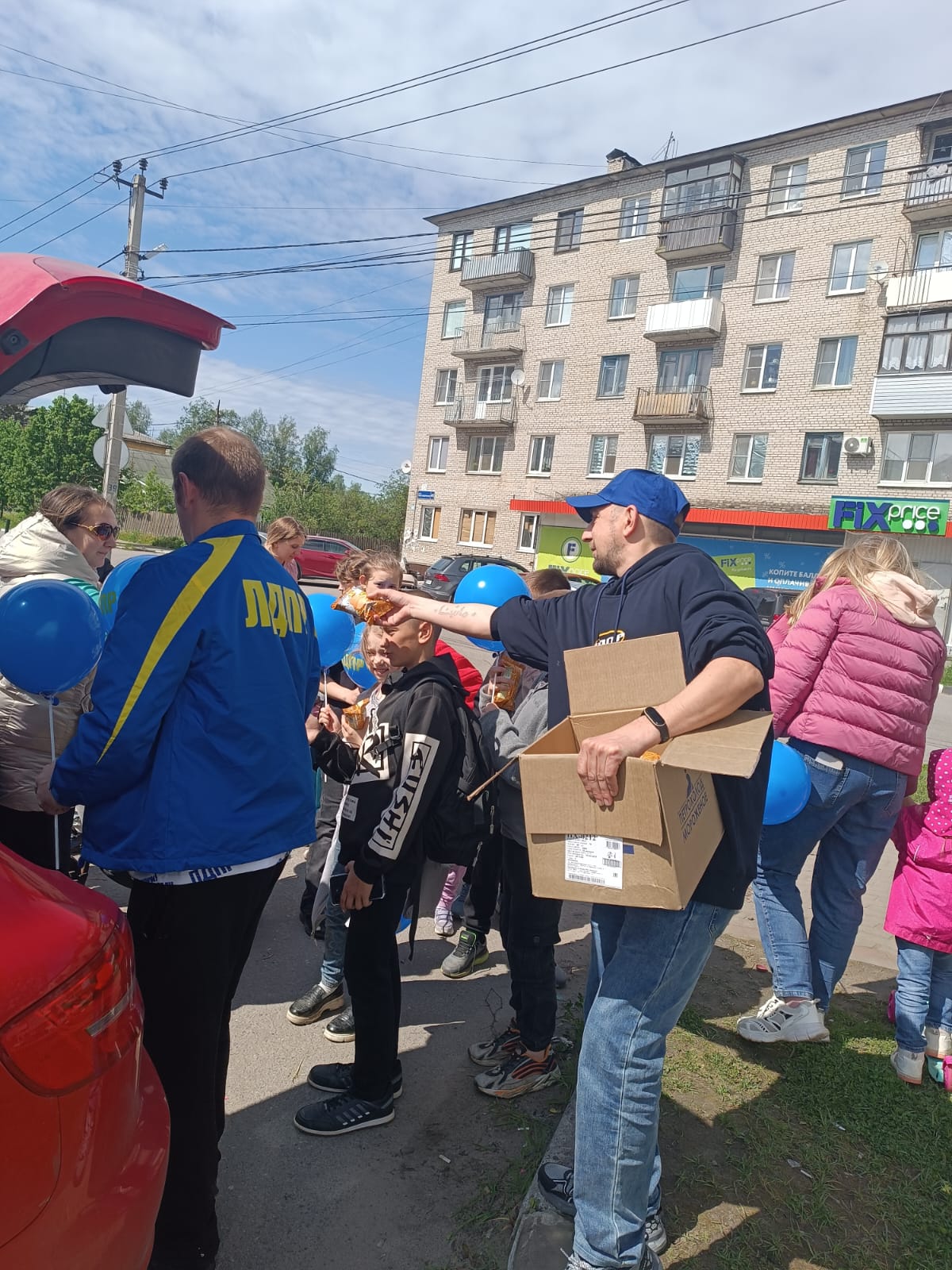 Раздача воздушных шаров и сладостей была организована во дворах жилых домов, на центральных улицах посёлка и возле детских площадок. Активисты ЛДПР и координатор местного отделения Дмитрий Куликов лично пообщались с жителями, поздравили ребят и их родителей, а также раздали подарки и угощения.