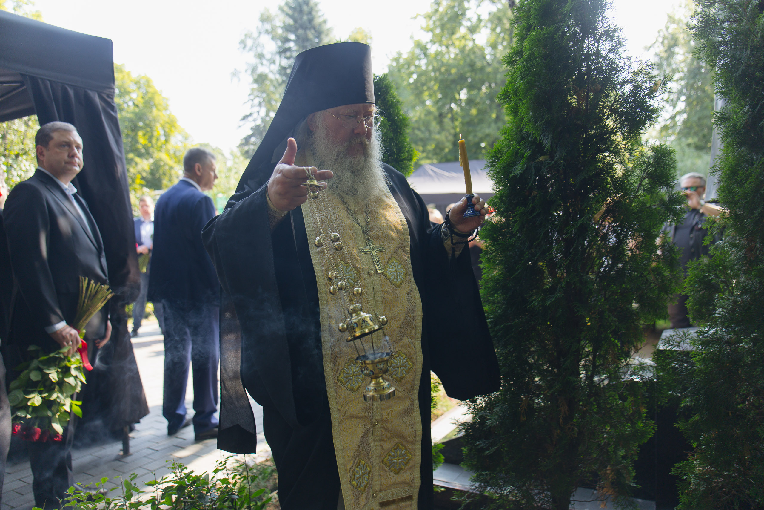 Литию — чин заупокойной службы на кладбище вне церкви, совершил иеромонах Никон. Это особое богослужение, оно позволяет присутствовать на нем всем, кто считает это для себя необходимым, независимо от воцерквленности.