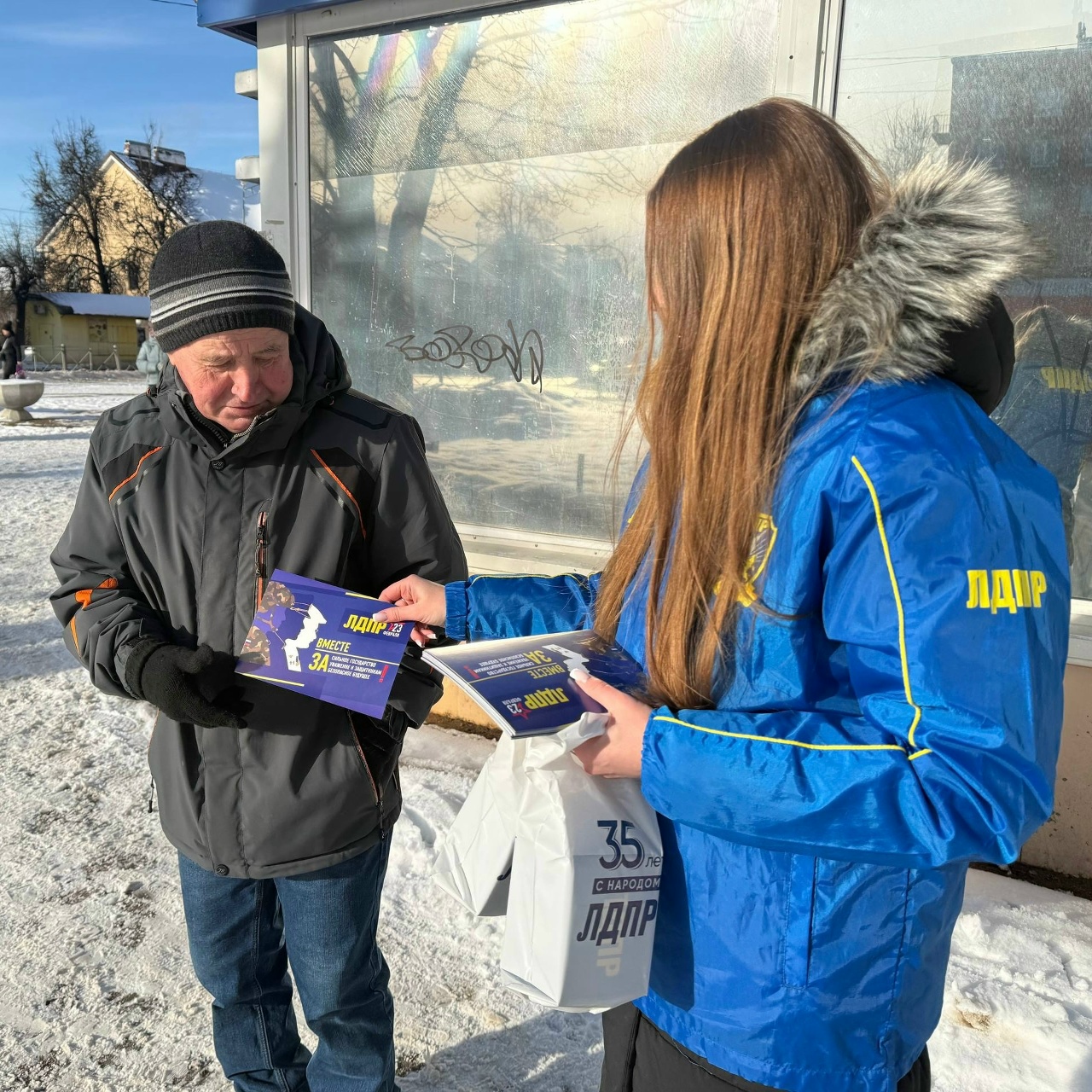 Молодежь ЛДПР поздравила с Днем защитника Отечества жителей Сланцев