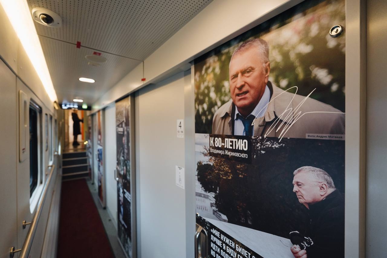 Пассажиры смогут ознакомиться с архивными фотографиями, цитатами и работами Владимира Вольфовича, посетить вагон-ресторан с меню его любимых блюд, а также просмотреть документальные фильмы и книги через медиасистемы РЖД.